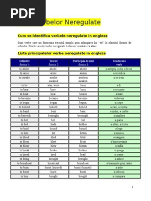 Doc Lista Verbelor Neregulate In Limba Engleza Hn Alexa Academia Edu