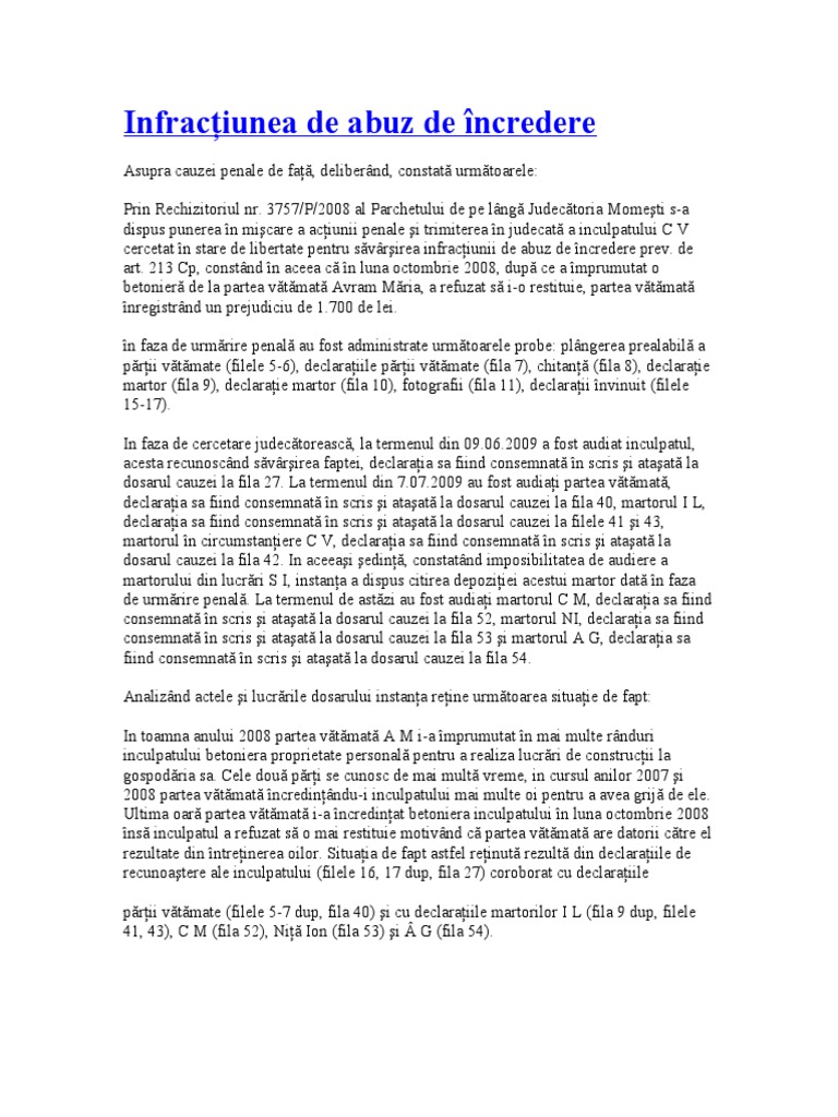 Abuz De Incredere Codul Penal