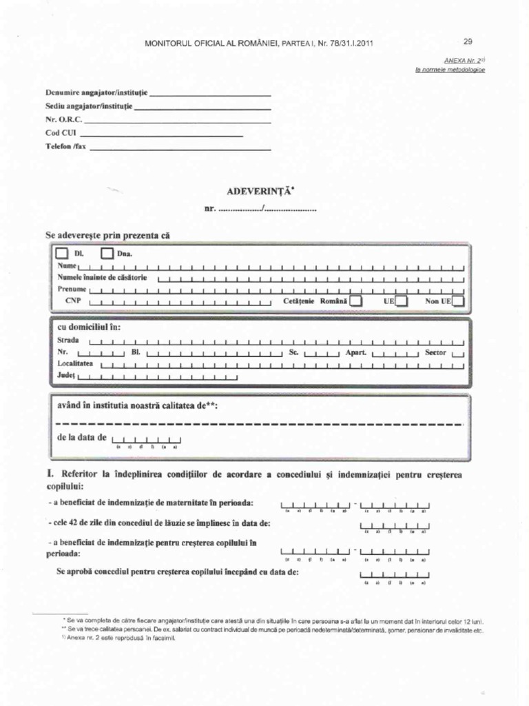 Model Adeverinta Solicitant Indemnizatie Crestere Copil