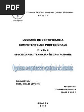 Atestat Complet Ml Clasa A 12 A Oraganizarea Operationale De Alimentatie