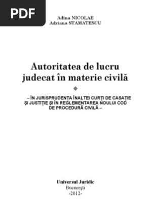 Autoritatea De Lucru Judecat In Materie Civilă Adina Nicolae Adriana Stamatescu