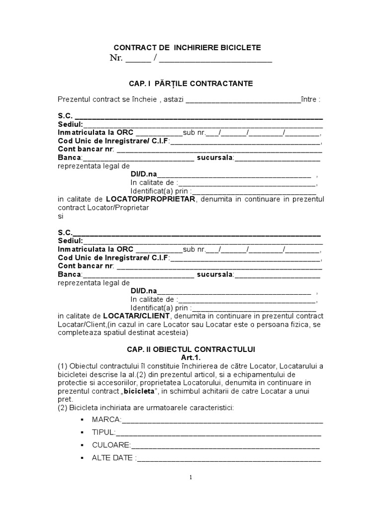 Contract Inchiriere Biciclete Ian