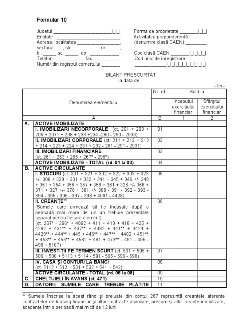 Bilant 10 Cont Profit Pierdere 20 Ordonator Credit Dare De Seama