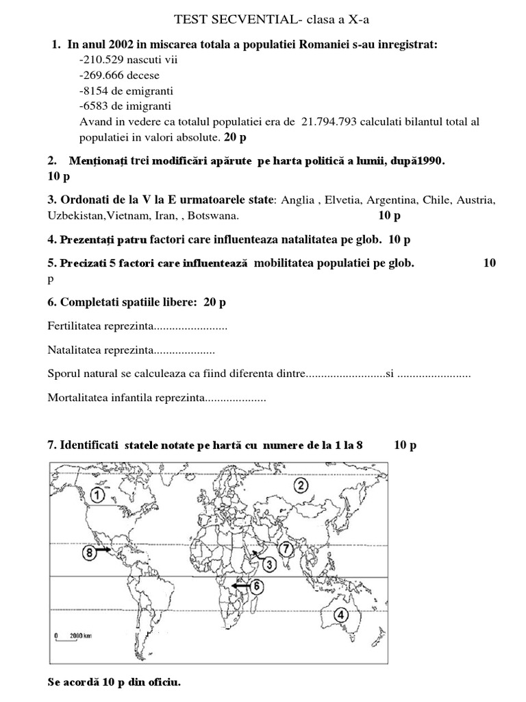 Test De Evaluare A Cunostintelor Geografie Clasa A X A 1