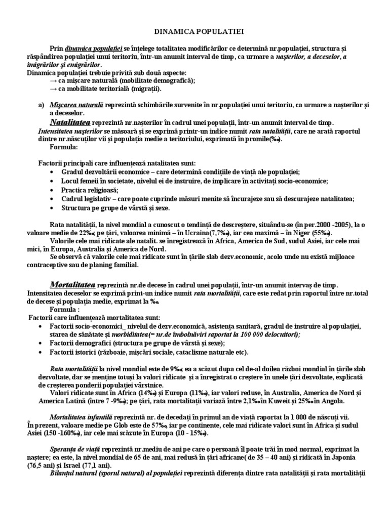 Natalitatea Dinamica Populatiei