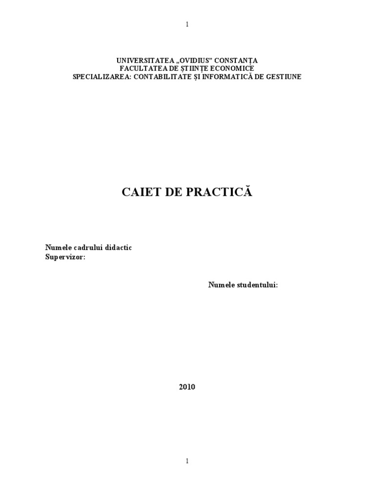 Caiet De Practica Contabilitate Si Informatica De Gestiune Proiecte Ro
