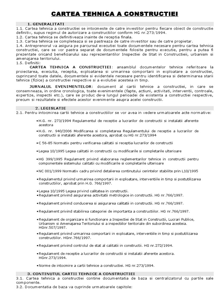 Cartea Tehnica A Constructiei Continut Si Modul De Intocmire Tomsbau