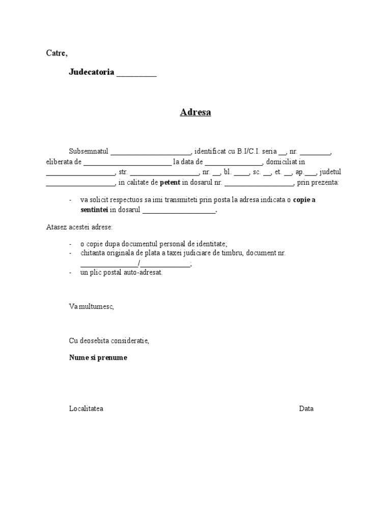 Model Solicitare