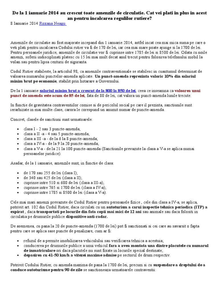 Amenzile De Circulaţie Pentru Persoanele Juridice Incadrate In Clasa A V A De Sancţiuni Fanatik Ro