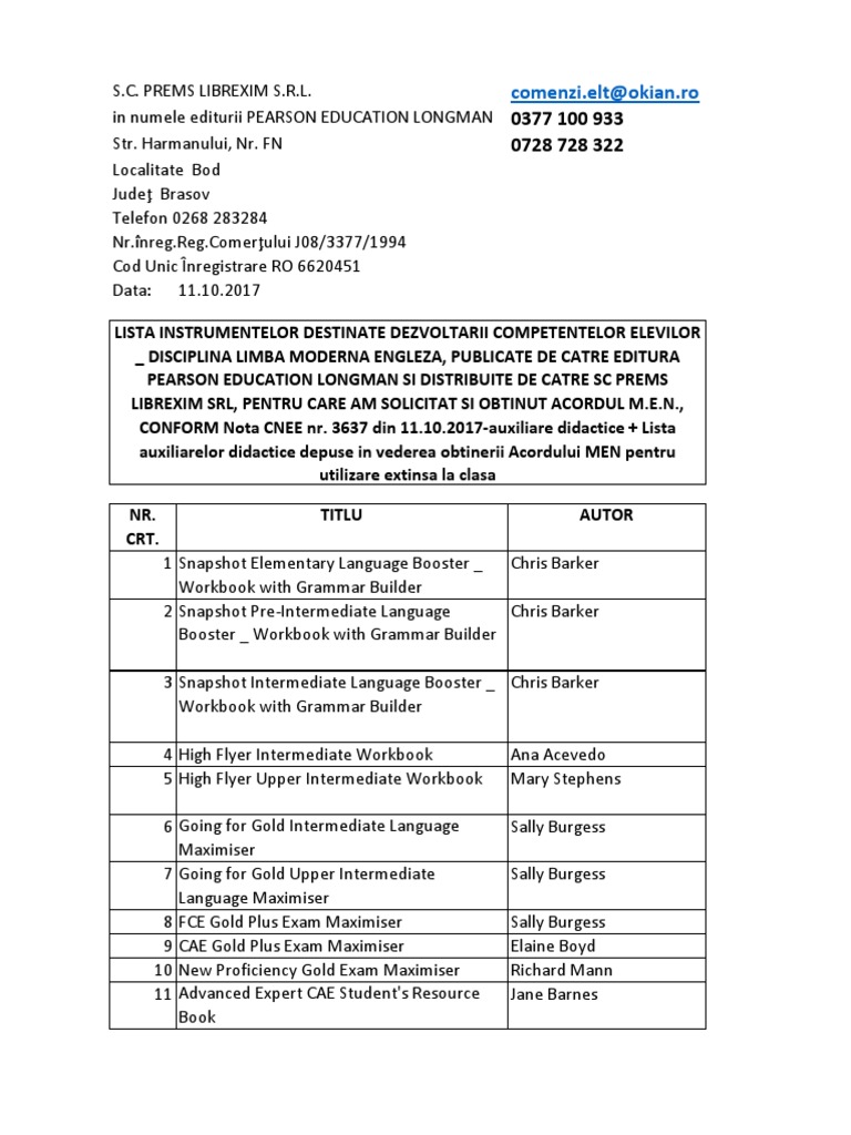 Oct11 17 Lista Pearson Longman Prin Prems Librexim Acord Men Pdf