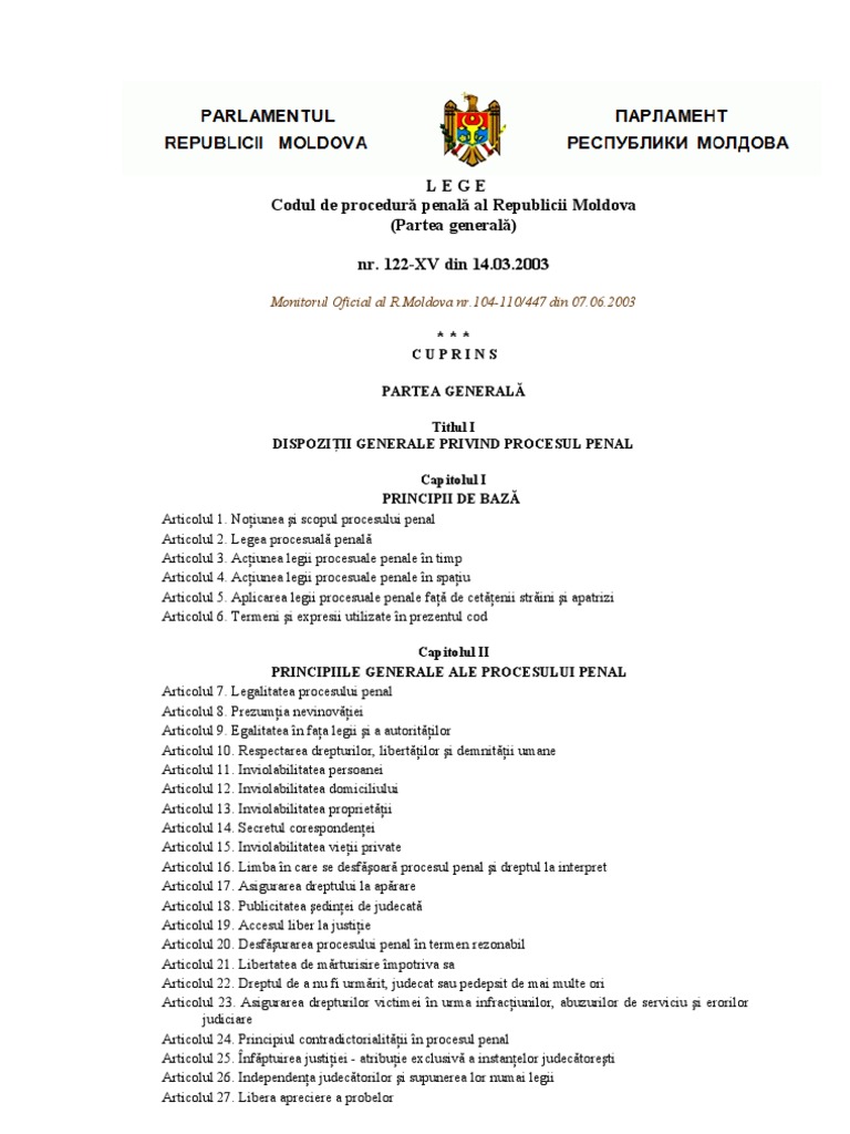 Codul De Procedura Penala Al Republicii Moldova