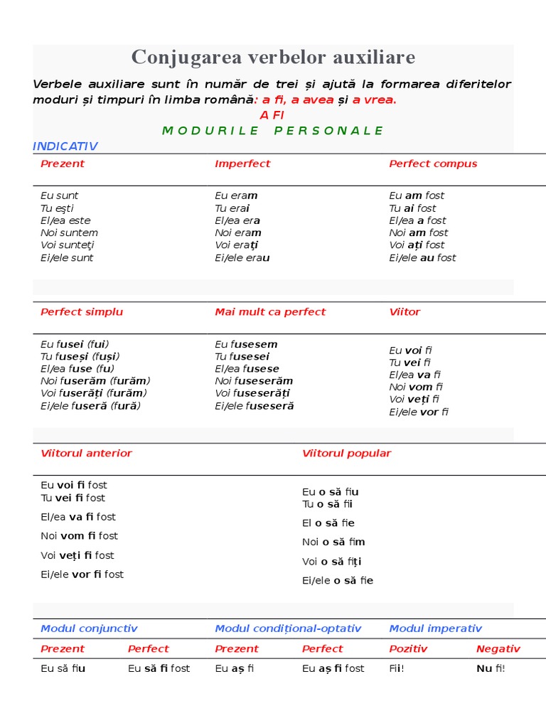 Conjugarea Verbelor Auxiliare