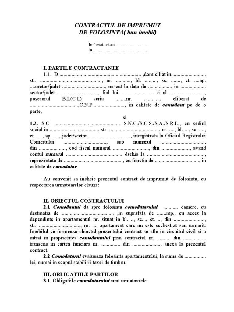 Contract De Comodat Locuinta Pdf