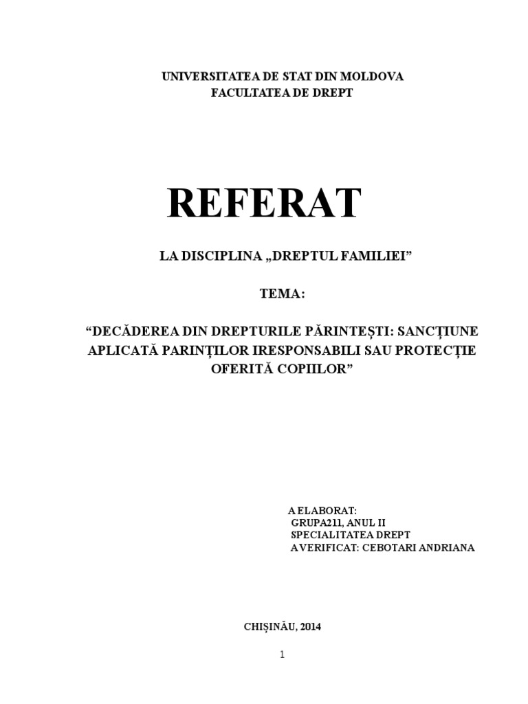 Proiect Decaderea Din Drepturile Parintesti Conform Legislatiei Republicii Moldova Drept 331444