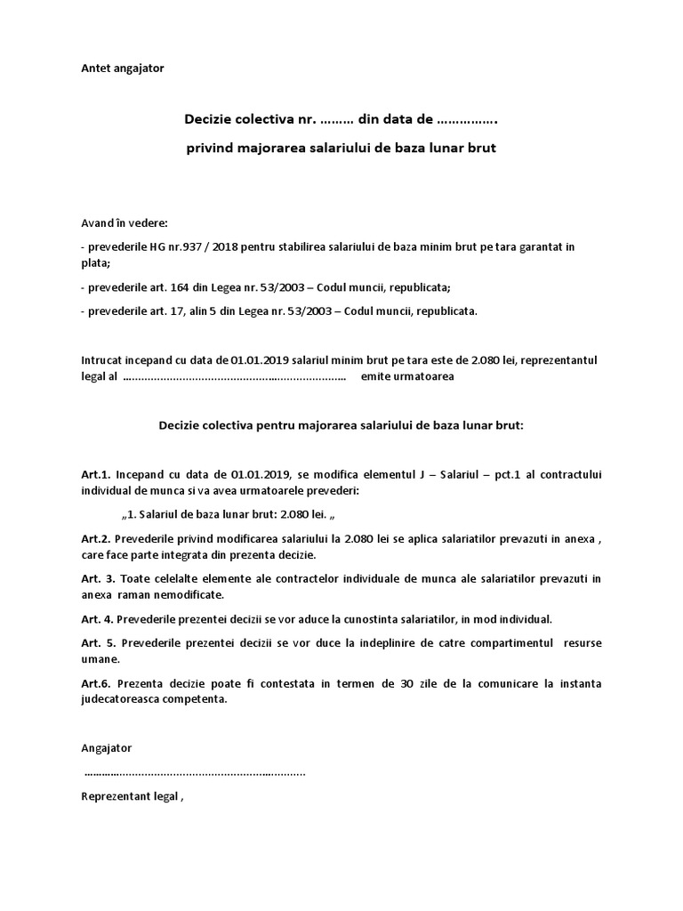 Decizie Colectivă Majorare Salariu 2019 Model Theexperts Ro