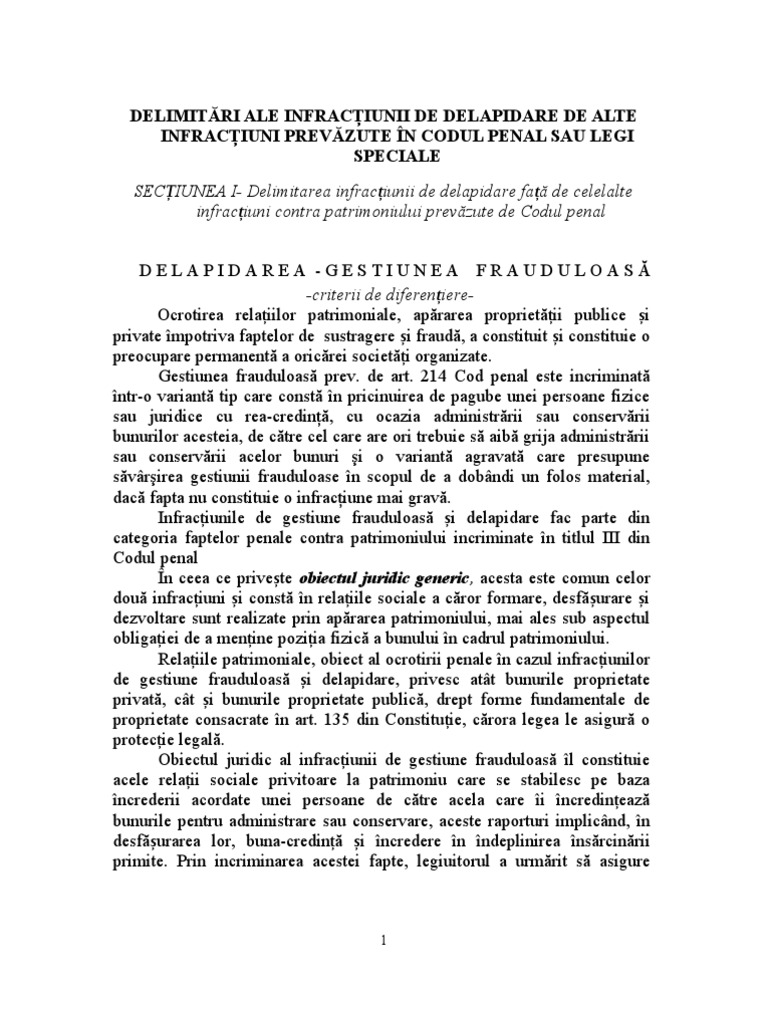 Delimitari Delpidare Si Alte Infractiuni Prevazute In Legi Speciale Doc