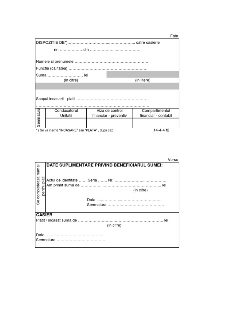 Dispozitie De Plata Catre Casierie