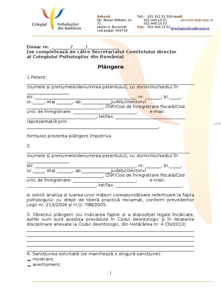 Formular Plangere