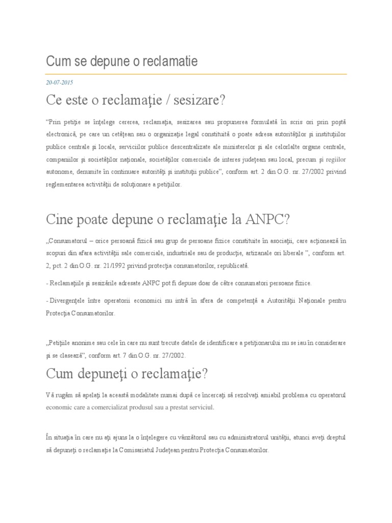 Cum Se Depune O Reclamatie Ce Este O Reclamaţie Sesizare