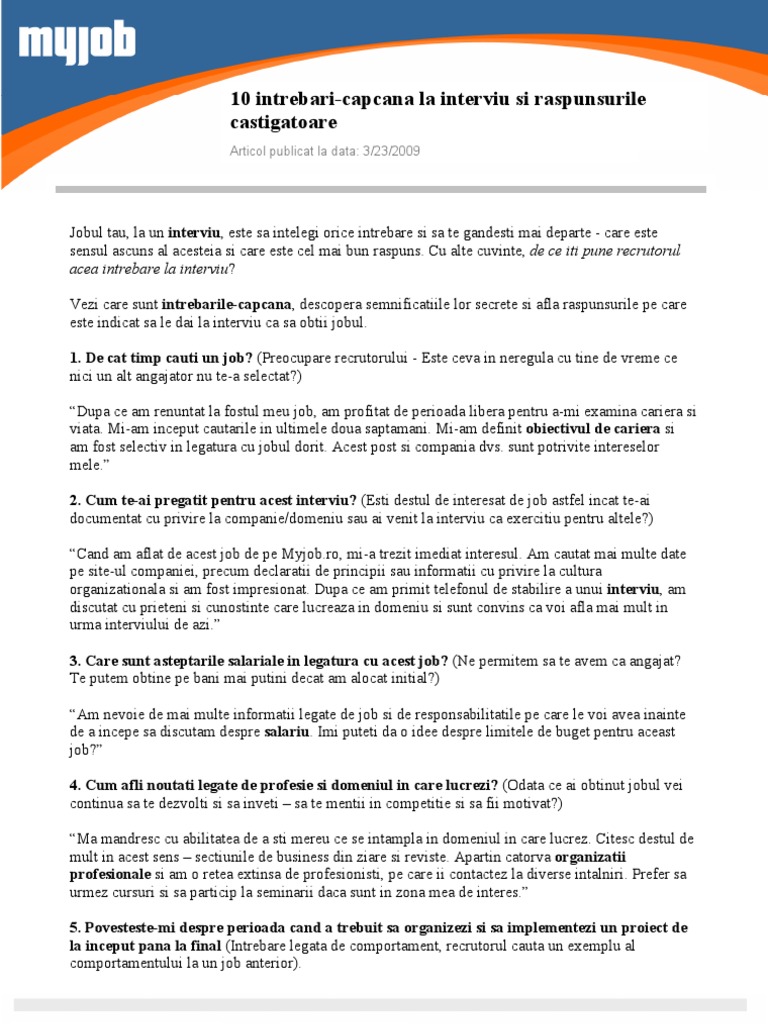 10 Intrebari Capcana La Interviu Si Raspunsurile Castigatoare
