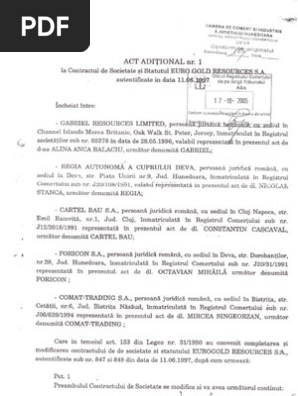 Act Aditional Nr 1 Euro Gold Resources 1997