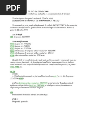Legea 143 2000 Privind Combaterea Traficului Si Consumului Ilicit De Droguri