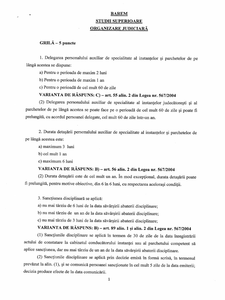 Barem De Corectare Organizare Judiciara A Grefier Studii Superioare Concurs 11 13dec2018