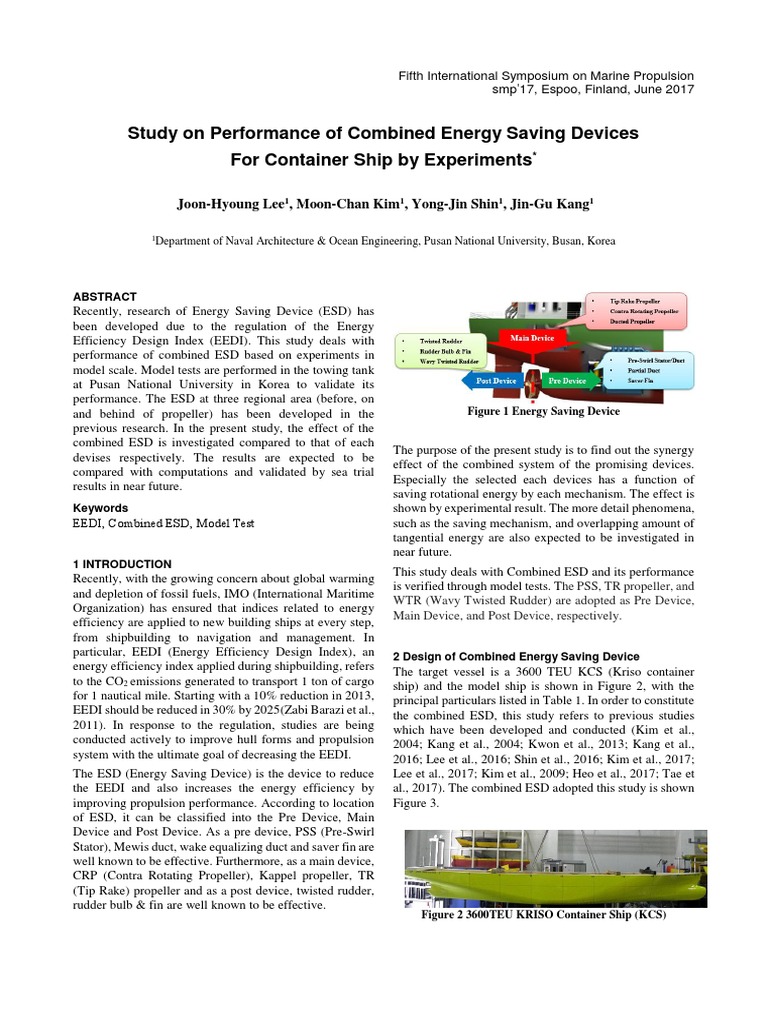 Study On Performance Of Combined Energy Saving Devices For Container Ship By Experiments Propeller Ships Free 30 Day Trial Scribd