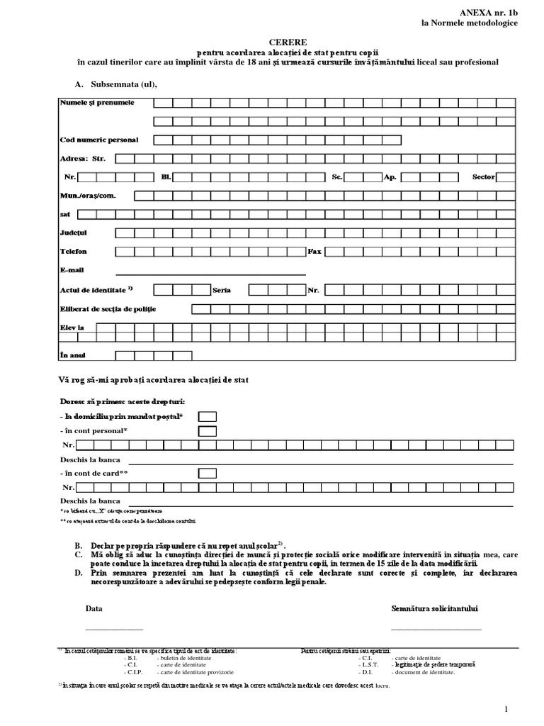 Model Cerere Alocatie Pt Tineri Peste 18 Ani Pdf