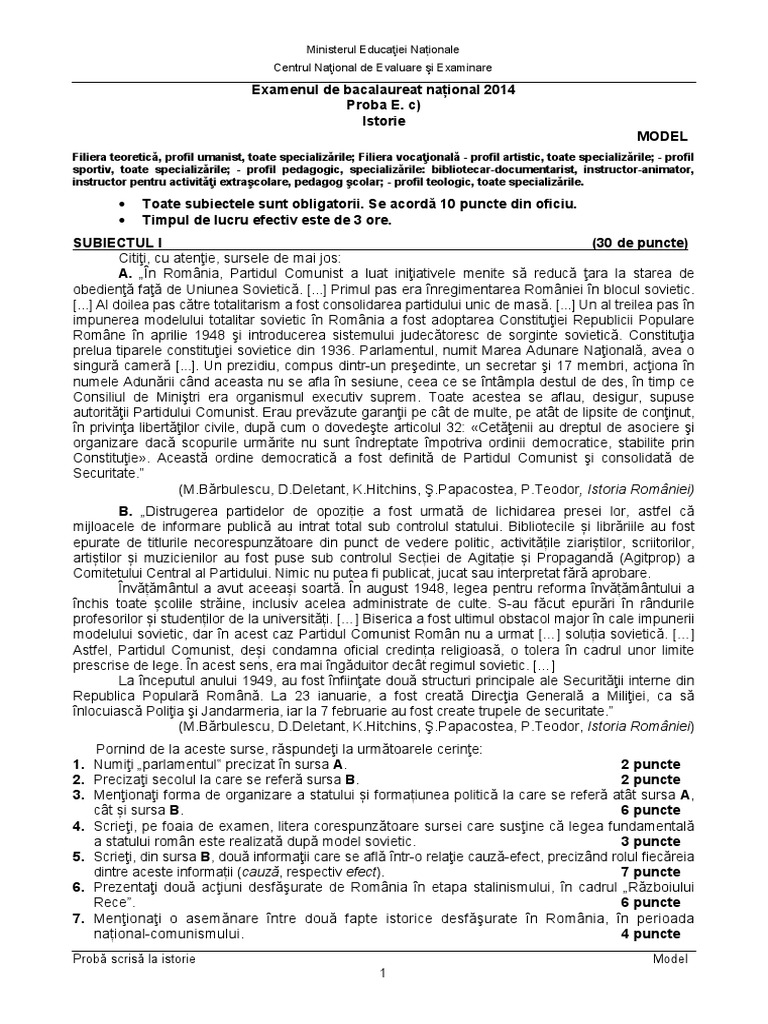 Bac 2017 Istorie Modele De Subiecte Si Barem La Istorie La Bacalaureat Stirileprotv Ro
