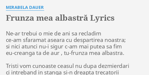 Mirabela Dauer Frunza Mea Albastră Lyrics English Translation