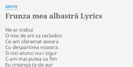 Frunza Mea Albastră Lyrics By Savoy Ne Ar Trebui O Mie