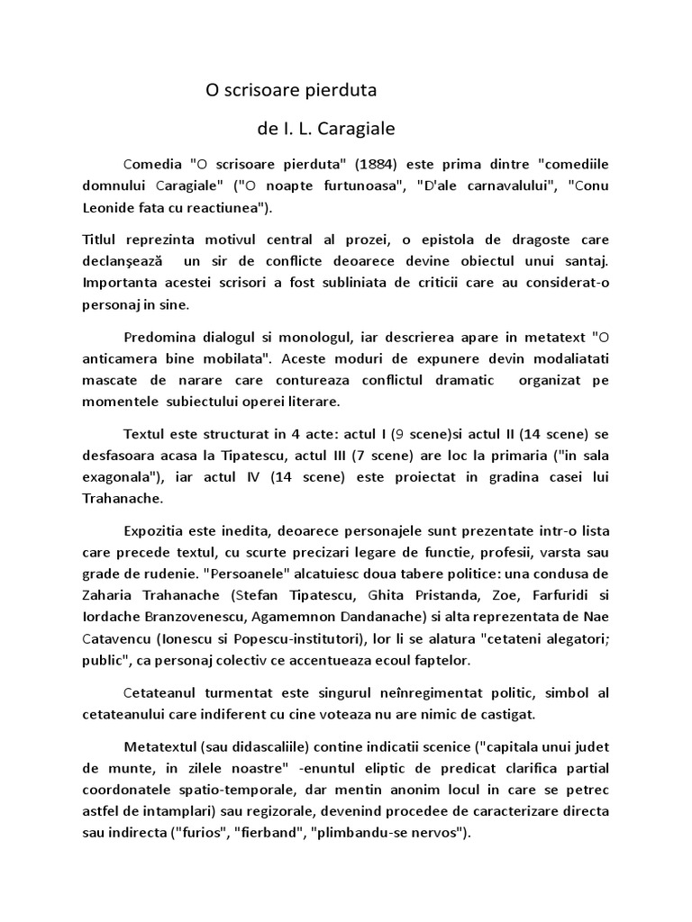 O Scrisoare Pierduta Pdf Document