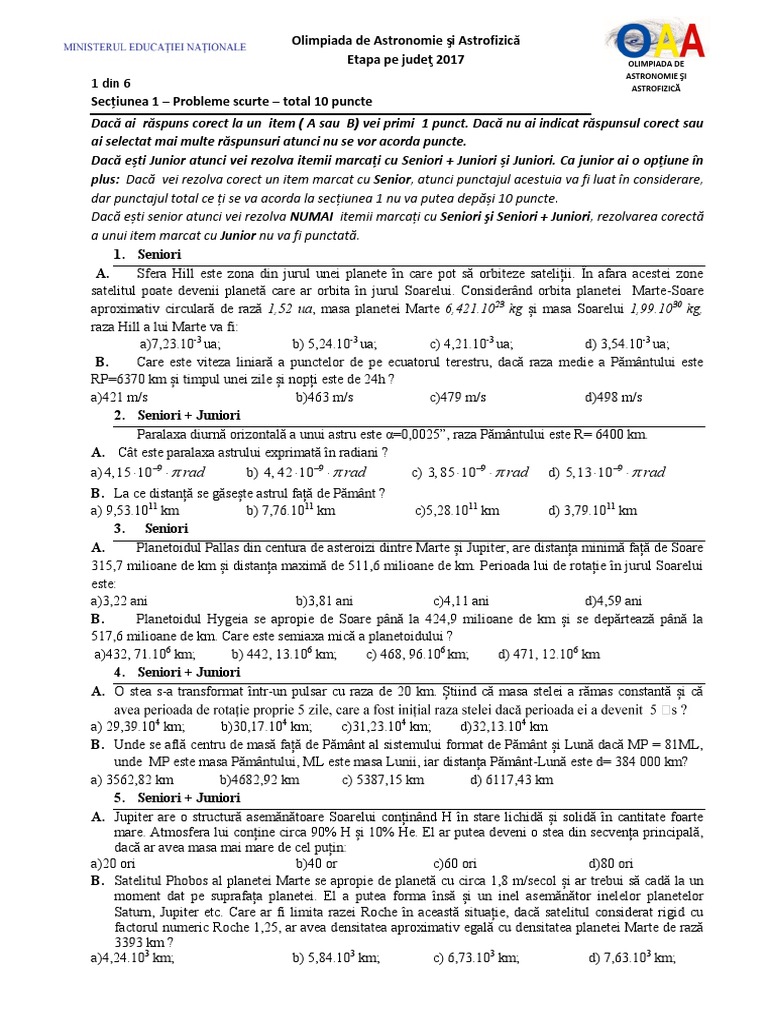 Ojaa 2017 Subiecte Olimpiada Judeteana De Astronomie Si Astrofizica