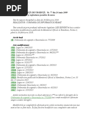 Ordonanta De Urgenta Nr 77 Din 24 Iunie 2009 Actualizata27 06 2016