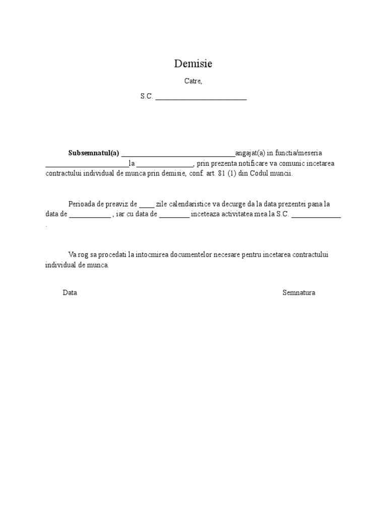 Cerere Demisie Cu Preaviz Doc