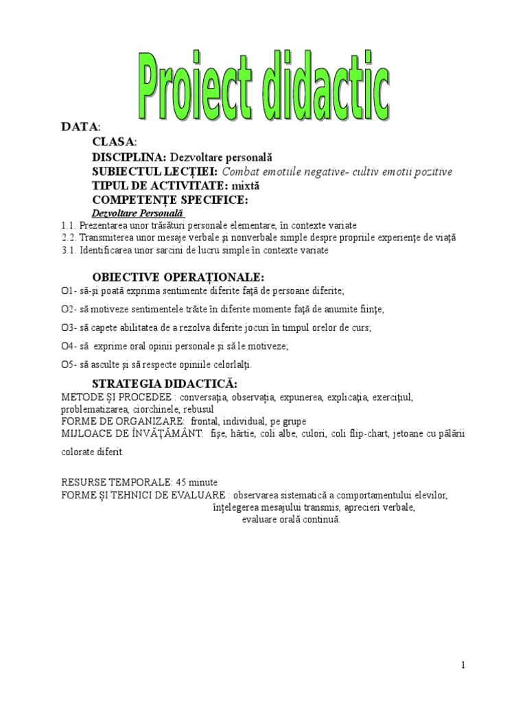 0 1 Proiect Emotii Si Comportamenyte Doc Document Educație Dezvoltare Personală Documentare