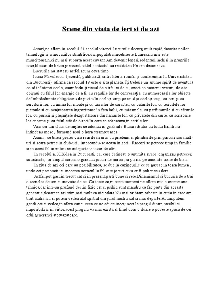 Scene Din Viata De Ieri Si De Azi Docx Document