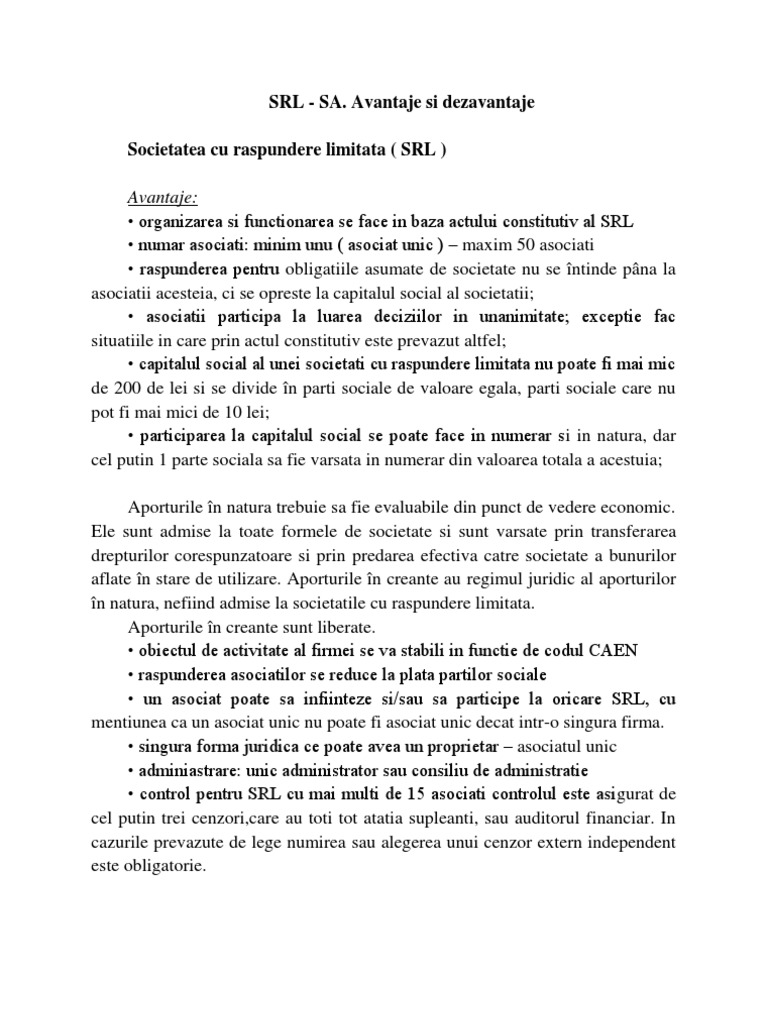 Avantaje Srl Sa Avantaje Si Dezavantaje Societatea Cu Raspundere Limitata Srl