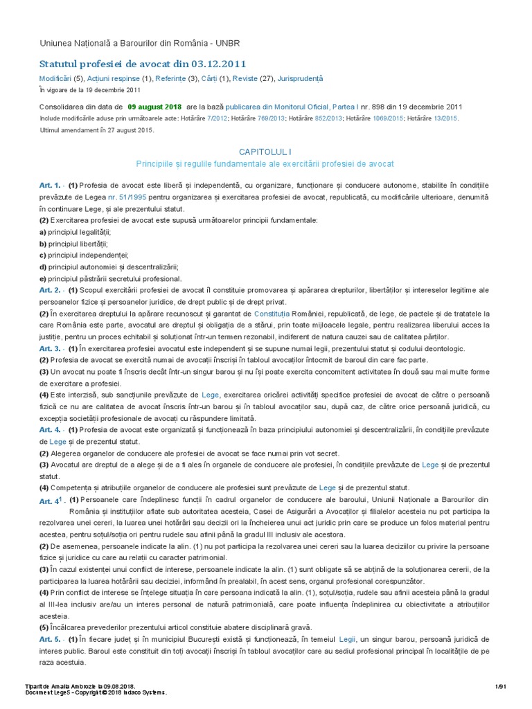Pdf Hotărarea Privind Adoptarea Statutului Profesiei De Avocat 1 Lorin Nedef Academia Edu