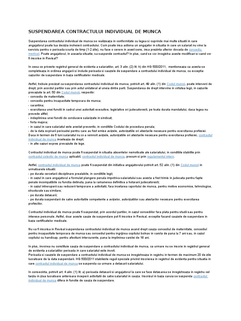 Suspendarea Contractului Individual De Muncă De Modificat